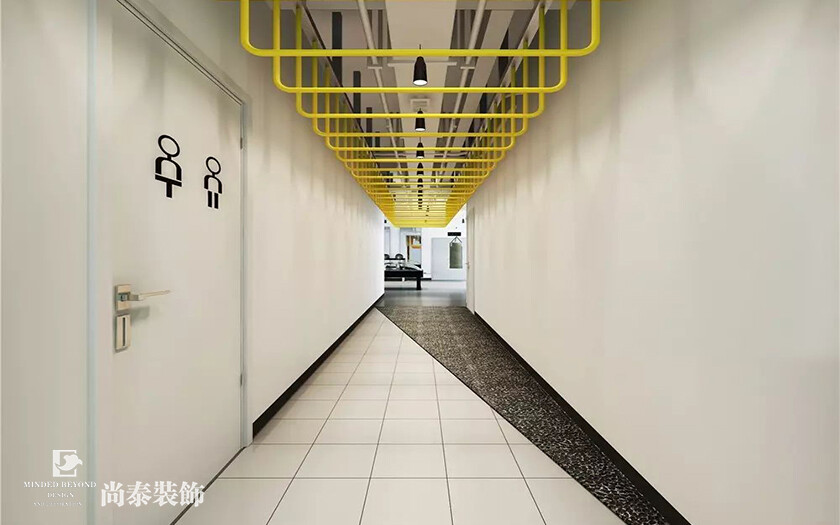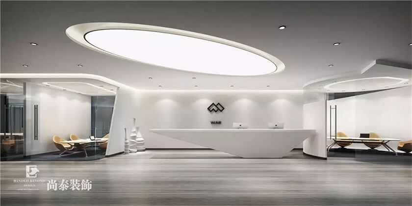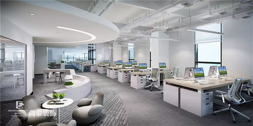 ▶本案为前海速贷通互联网金融服务(深圳)有限公司(简称“速贷通”)的新办公室设计,该企业是一家依托互联网等技术手段,面向中小型企业及个人提供金融中介服务。这次尚泰装饰为其打造了一个以白色为主色调,以圆弧造型搭配灯光,配备员工开放办公区、休闲洽谈区,健身区,管理层办公室等功能区域,空间职能上的巧妙转换,营造出一种高效的商务办公氛围:一种正式的现代新型办公设计概念。