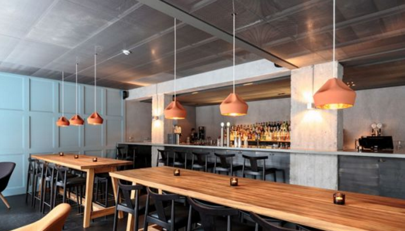 这个地方曾经是一家汽车修理店,它的结构非常开放。它由Graham Baba建筑事务所重新设计,将家庭式展位和滑动玻璃面板打造成更亲密的区域。室内设计现在融合了传统和现代元素。它具有许多由回收材料制成的元素,整体设计不仅时尚而且可持续。