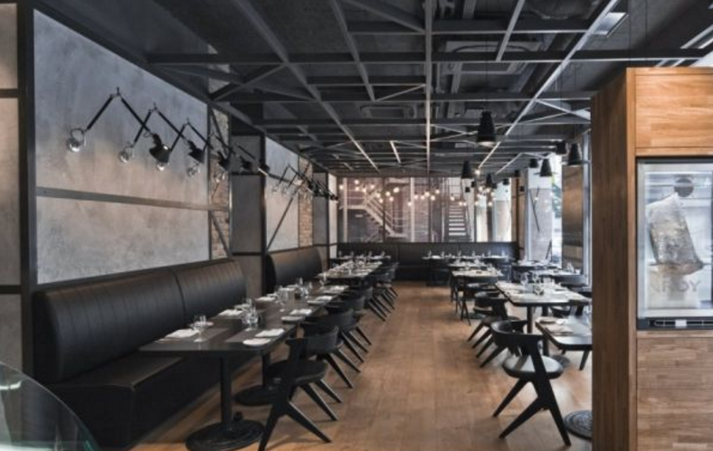 褐色色调已被黑色和灰色色调取代,家具已被更换。尽管如此,这家餐厅仍然拥有与众不同的朴实气息和温馨的氛围。设计师大多使用天然材料,如木材,石材,皮革和亚麻布,这对整体外观有着显着的贡献。此外,这个地方也有新的地板和一个黑色的木材制成的新酒吧。