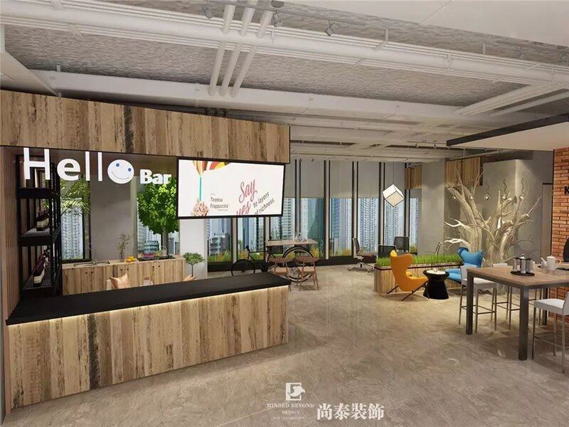 ▼这里既是前厅,又是茶水间,温馨又实用的布局体现出公司的独特文化品味。