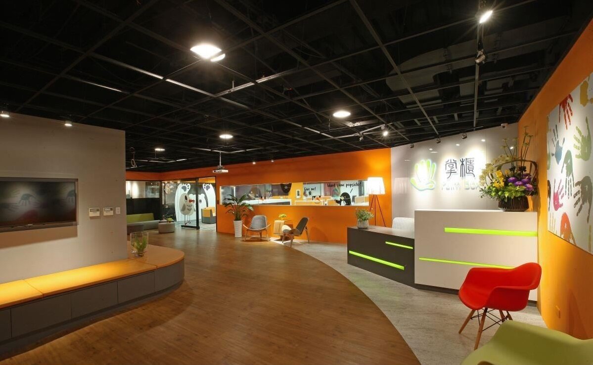 这家新创物联网公司,一进门就给予震撼的视觉吸引力,设计师利用鲜艳的橘色铺陈搭配工业风的铁件设计,营造公司精神,入口的手掌意象也示意著待客圆融,团结合作的公司理念。