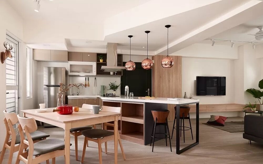 地板是居家空间中面积最大,占视觉印象比例高且关系安全的区域,因此在挑选材质时,要依照家庭成员及生活需求选择,在进行不同活动的空间,选择适合的建材。木地板拥有自然的风貌以及温润的踩踏适合室内大部分的空间,但如果是户外如阳台或是较潮湿的厨房与卫浴则建议选择木纹地砖,既能保有视觉美感也更符合使用需求。