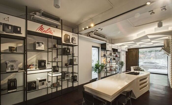我们今天来到佳敏企业有限公司位于深圳市的厨房设备展售旗舰店。为了打造完美的旗舰店空间,业主特地找来隐巷设计为空间进行整体规划。设计师表示,原本的基地为两个狭长型的店铺空间,由于纵深较深,使光线无法均匀进入空间内部;再加上原格局动线规划不善,导致整体空间感较为杂乱。