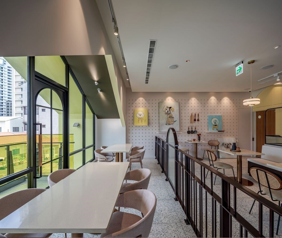 全栋建筑风格则以宠物友善的网美餐厅做为主轴,室内缤纷多样且活泼的设计,不只提供让毛小孩快乐玩耍的空间,每个角落都是一个绝佳的拍照景点,提供毛爸毛妈留下最美瞬间的场地。