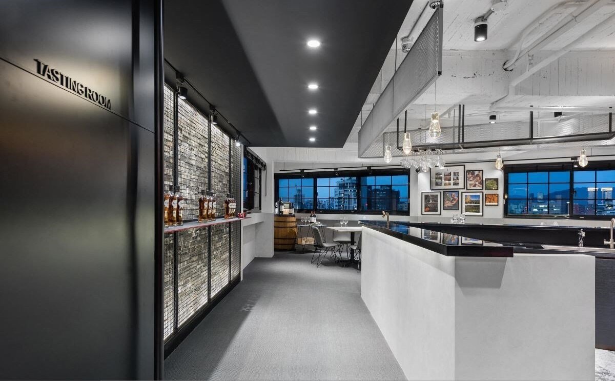 新式品饮招待会所中除了要有吧台、座位之外,机能上也需要考虑到藏酒、吐饮桶以及轻食料理区,偶尔也需要当作研讨会与公司内会议场地。设计师在空间中央打造一座黑色三角吧台呼应三角形老屋格局后,顺利创造双向动线,并沿著两侧安排座位,活化了过往难用的畸零空间。入门的墙面也在复古青灰砖之外架设铁网,诠释特色酒窖的陈列。
