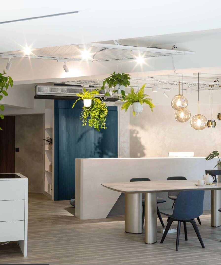 100平商业空间翻新后为品牌的展示空间,虽然屋况老却是三角窗格局,因此设计师善用此优势,将室内配置转向,运用斜切的设计打造迎宾动线,并透过混搭风的创意设计,打造吸睛网美墙,吸引路人拍照打卡,增添过路行人驻足停留的好奇心,并传达品牌欢迎顾客、真诚接待的理念。
