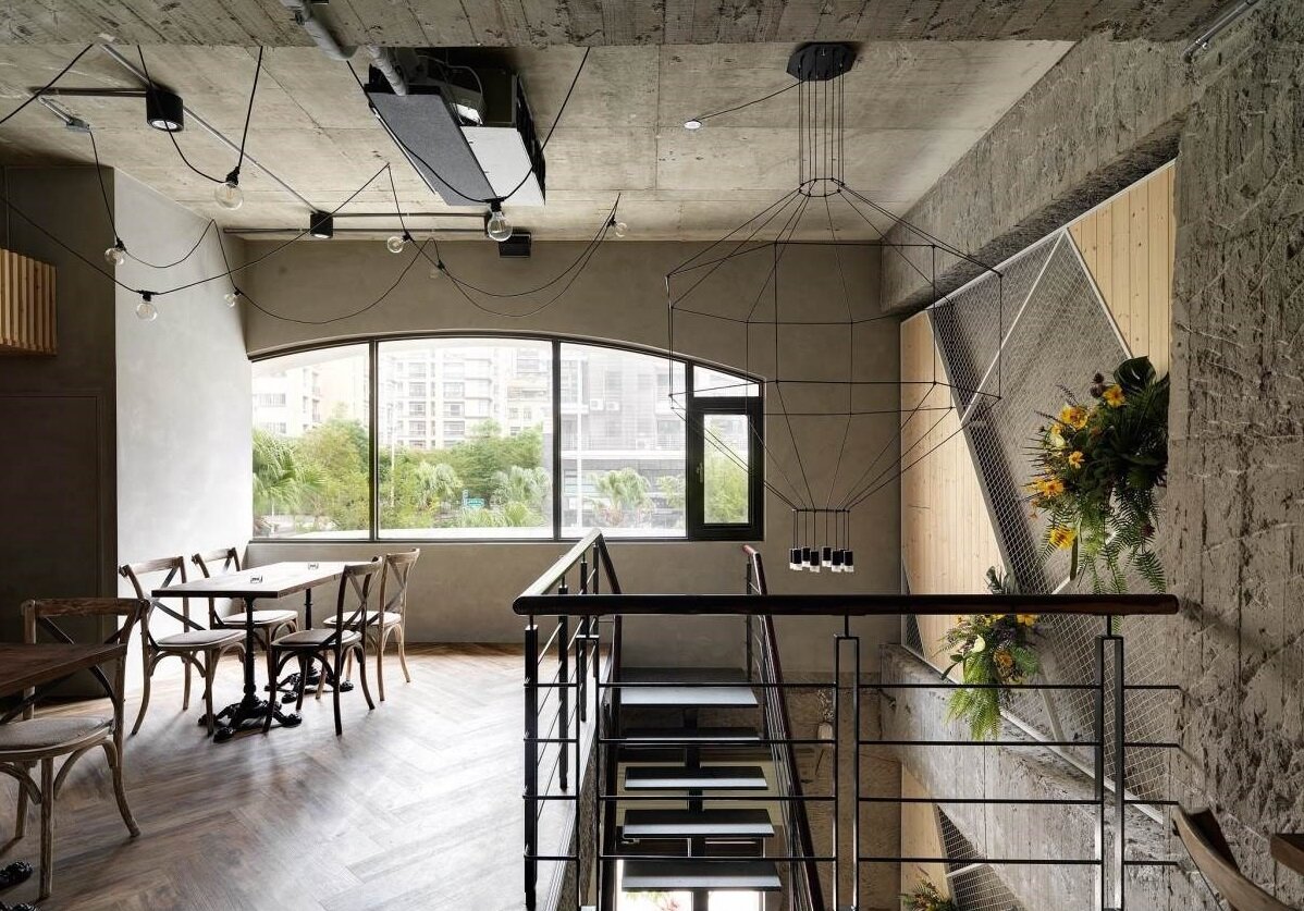 大面积的天花板与墙壁选择保留粗犷的水泥原始结构,象征著澳洲料理不对食物做过多加工,以最简单的烹饪方式呈现食材的自然风味。地面用水泥粉光与进口磁砖划分一楼用餐区与吧台,二楼人字纹木地板借由打磨拼贴诠释自然纹理,简单的铁件透过几何概念堆叠出清透的隔墙屏风。借由创新设计将发展出原始建材的新风貌,诚如游历澳洲归国的主厨夫妻将西方料理带入中式复层住居的初心,欢迎大家在朴实自在的空间品尝天然健康的澳洲料理。