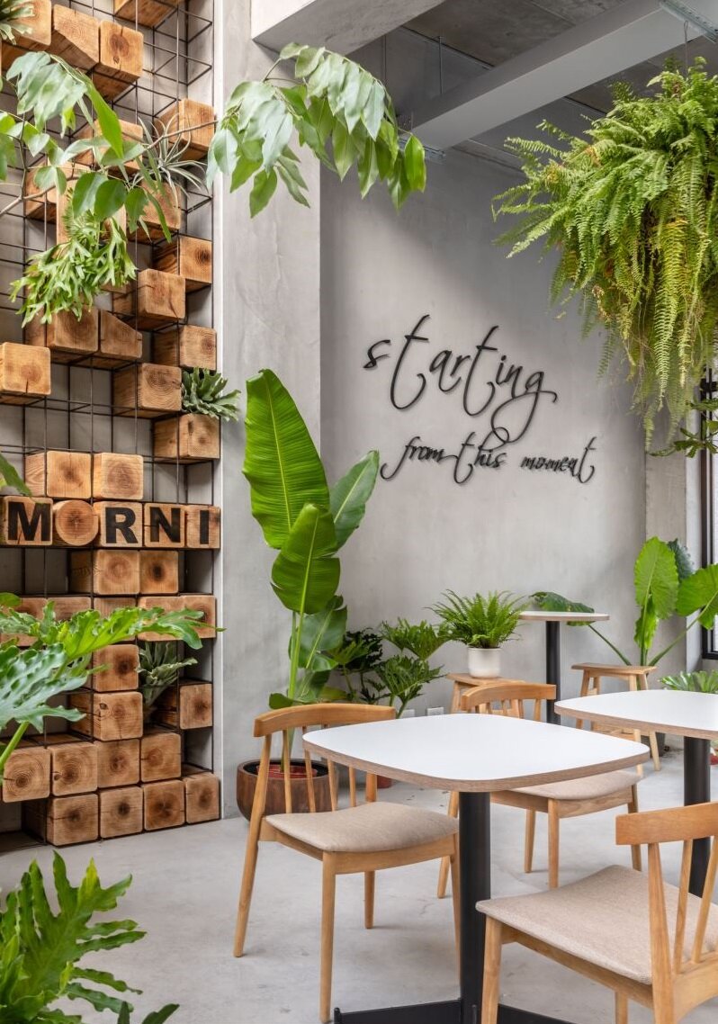 整体搭配大片落地窗,连贯楼层的视野,造就放眼望去的美丽景致,并让户外光线大量流泄到市内每个角落,同时搭配大量植栽点缀,挹注真实的生活温度,细节则采以旧木纹材料元素、黑色铁件作为搭配, 透过异材质撞击出工业风气息,却不失自然温润的人文质感;一整道立面借由铁件组构墙面风景,成为最主要的视觉核心,以层层堆叠的木方块,勾勒一幅深具独特个性的景象,丰富了空间端景!