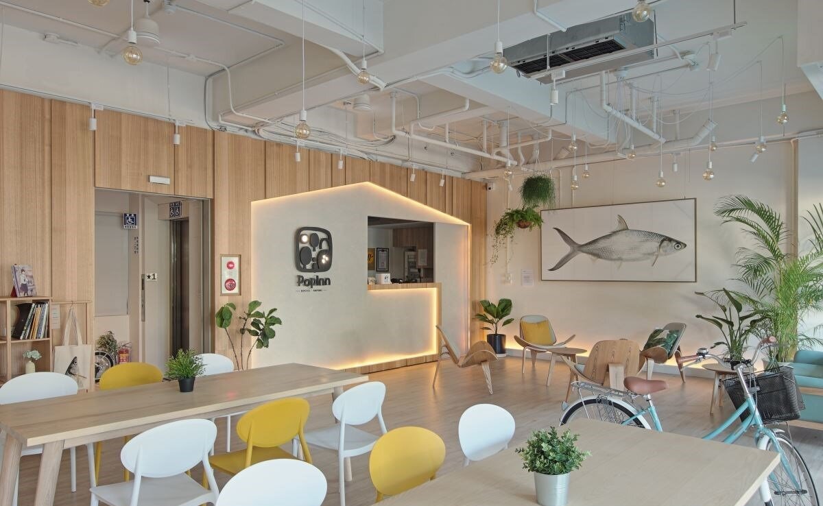 国际青年旅舍,是拥有 4 层楼、总面积 140 坪的中古连栋式透天厝,设计师透过大面积的木质调,结合温暖的色彩搭配,从一楼公共区到楼上的住宿房间,都表现出轻盈爽朗的简约风情,期盼每个到此住宿的旅客都能安心享受“家”的舒适感。