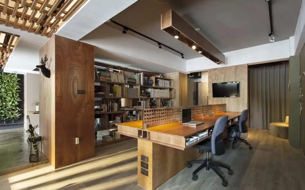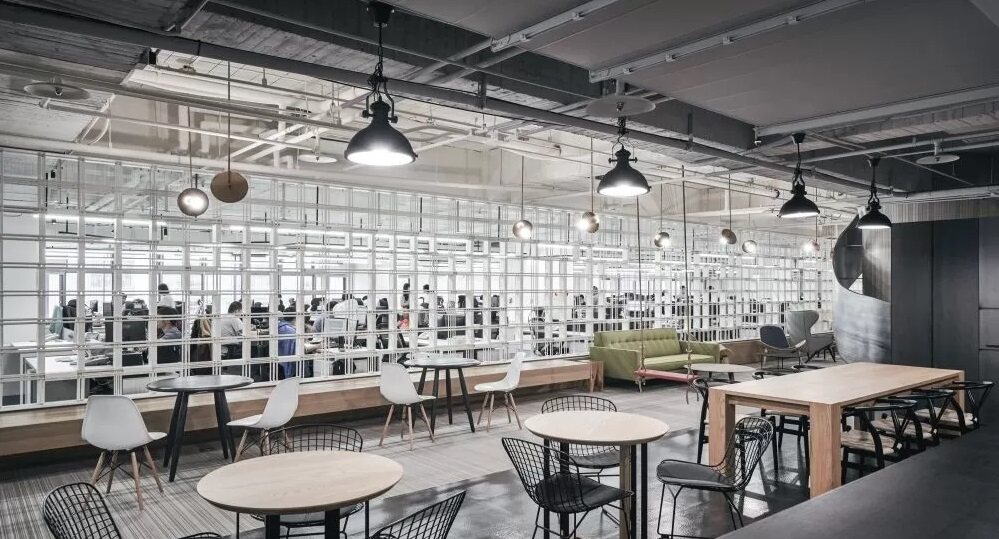如果办公室本身墙体较多,那也可以将墙体保留中间部分,将左右两边打掉作为出入口,创造出环状动线。让行走方式变得更加有趣,方向性也更多,也能增加动线弹性。而刻意打掉墙体的两边也能成为办公室独特的风格,粗犷随性的感觉也让工作者能更加放松不拘谨。