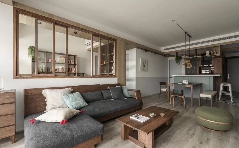 以下两个设计都使用了较柔和的草绿色沙发作为客厅主角,可以突显空间明亮通风的感觉。而为了创造整体色调的和谐性,禾筑设计选择在一面白墙上搭配一幅有著亮绿色图形的画作;麓人设计则是在沙发背墙上悬吊自然风挂画,并选用黄绿色抱枕点缀,能够让居家看起来既平静又充满活力。