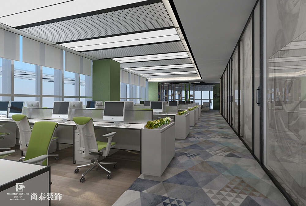 主要建材:烤漆、喷漆、无缝地板、喷砂玻璃、冲孔浪板、铁盒子、柔光带