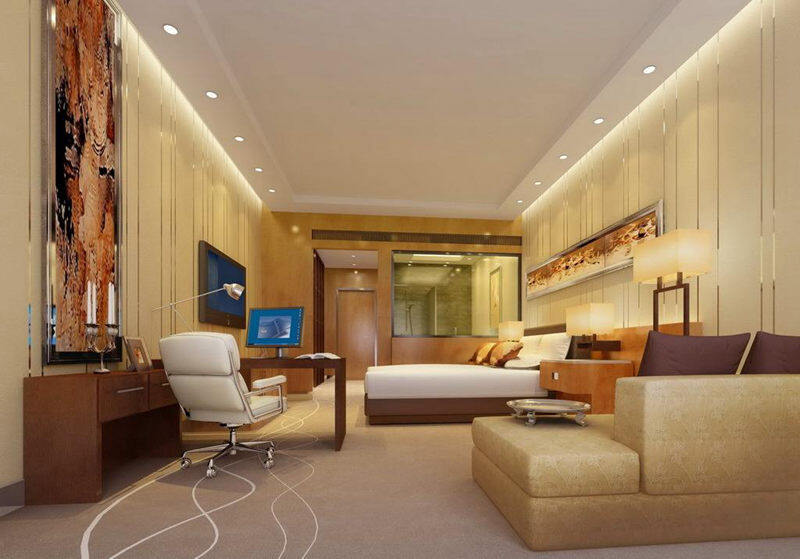 色系与色系之间起到很好的互补作用,酒店装修设计中,无论是家具、还是背景色等色调是十分和谐和统一的。